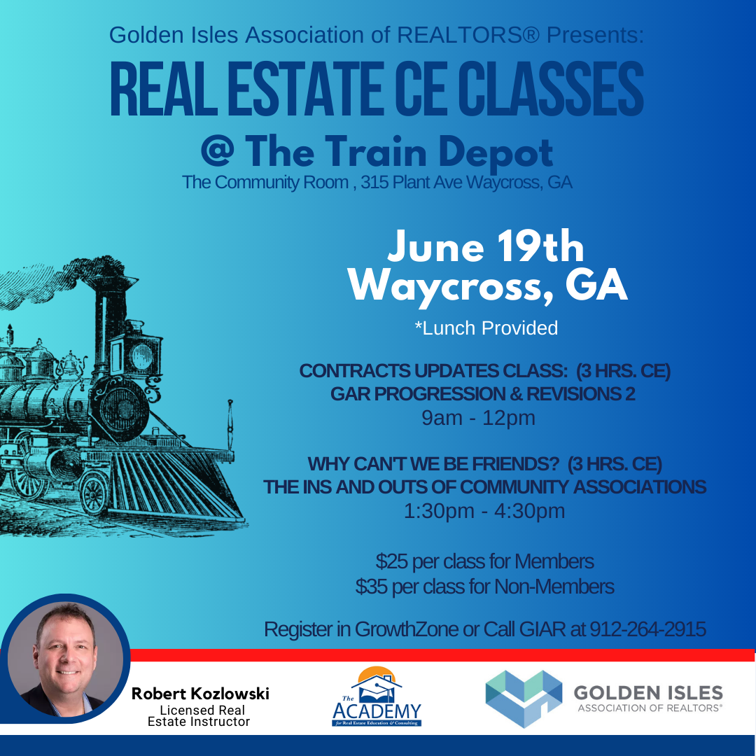It's that time of year again! Don't miss learning about important revisions and updates to your GAR contracts and forms. This class provides 3 hours of GREC approved CE. Non-GIAR members welcome!